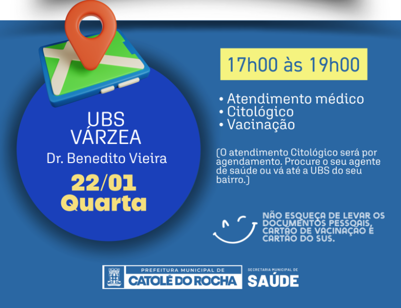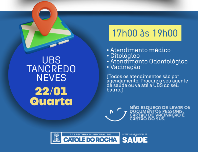 Mutirão de Atendimento Noturno nas UBS's do Batalhão, Várzea e Tancredo Neves nesta quarta, dia 22 de janeiro. Verifique os horários de atendimento e se precisa de algum agendamento.