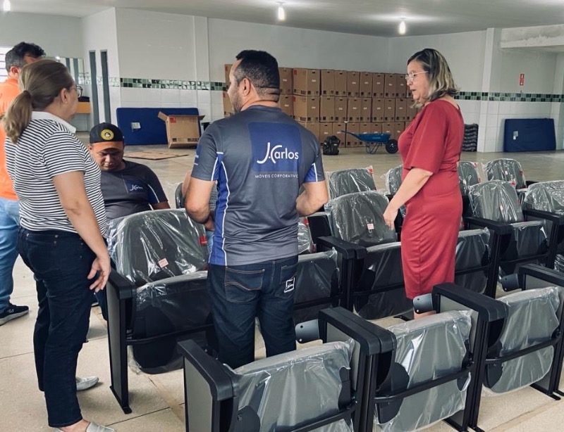 O auditório da escola municipal Prof. Catarina de Sousa Maia recebeu cadeiras apropriadas para o local. O investimento representa a preocupação da PMCR/SEMED em oferecer para os alunos e professores uma estrutura cada vez melhor.