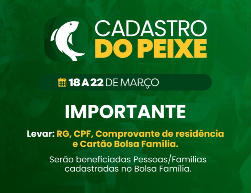 A prefeitura Catolé do Rocha, por meio da Secretaria Municipal de Assistência Social, realizará de 18 a 22 de março, o cadastro para recebimento do peixe da semana santa.
