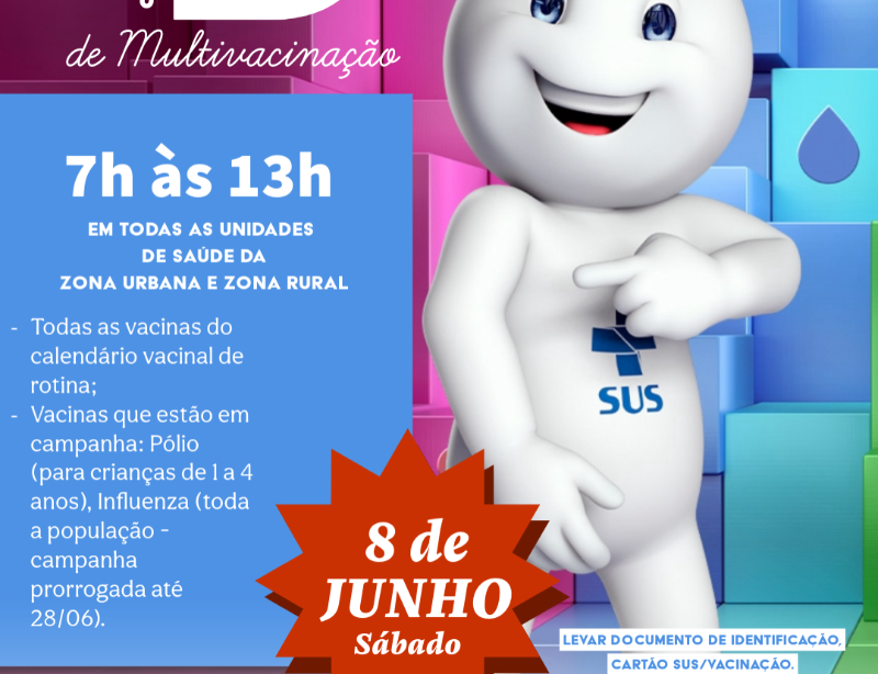 💉 A PMCR, por meio da Secretaria Municipal de Saúde, realizará o Dia D de Multivacinação neste sábado, dia 8 de junho, em todas as UBS's da Zona Rural e Urbana, das 7h às 13h.
