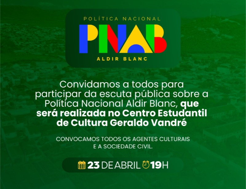 Convidamos todos os agente culturais, amantes da cultura e a comunidade em geral para participar da escuta pública sobre a aplicação da Lei Aldir Blanc no nosso município!