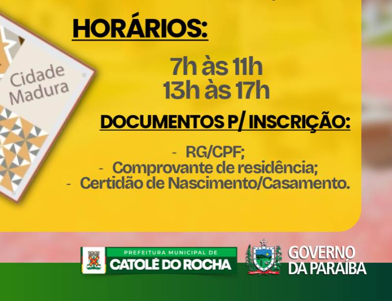 🏡 As inscrições para o Programa Habitacional Cidade Madura começam nesta quarta, dia 4 de fevereiro e seguem até esta sexta, dia 6, na Secretaria Municipal de Assistência Social, nos horários de 7h às 11h e das 13h às 17h. Os interessados devem estar munidos de seus documentos pessoais (RG/CPF), comprovante de residência, Certidão de nascimento/casamento. A seleção e o acompanhamento dos beneficiários são realizados pela Secretaria de Estado do Desenvolvimento Humano, responsável pela execução, monitoramento e fortalecimento das ações voltadas à proteção dos direitos da pessoa idosa.