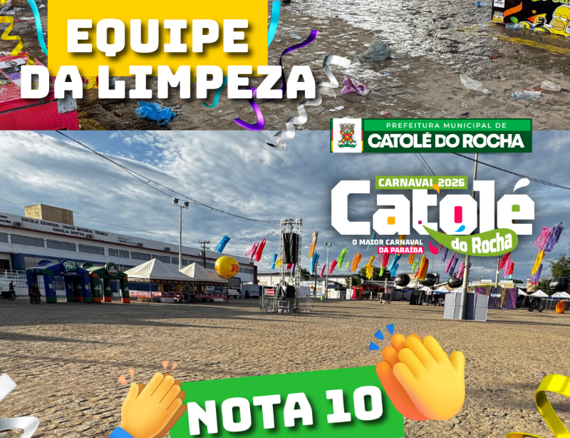 A Prefeitura de Catolé do Rocha reconhece e parabeniza o excelente trabalho realizado pela equipe de limpeza da SEINFRA durante o Carnaval 2026.Enquanto a festa se encerrava a cada noite, os profissionais já entravam em ação, garantindo que os espaços públicos estivessem limpos, organizados e prontos para receber novamente a população no dia seguinte.