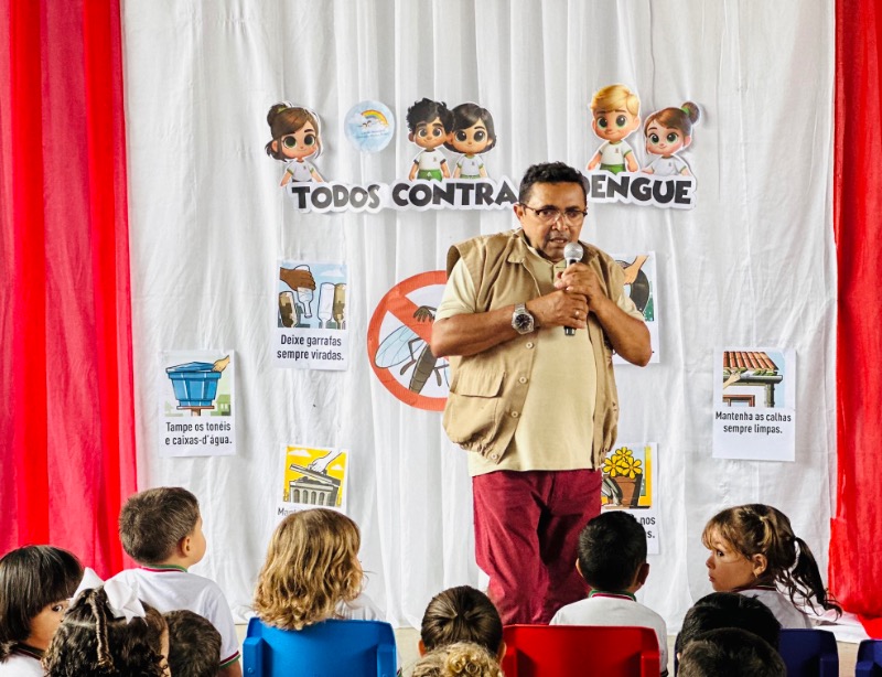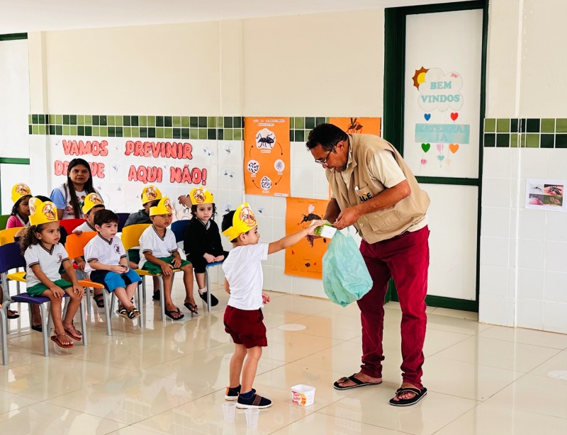 Como estamos na Semana D de combate ao mosquito causador da dengue, orientações através de dinâmicas e músicas foram repassadas para as crianças.