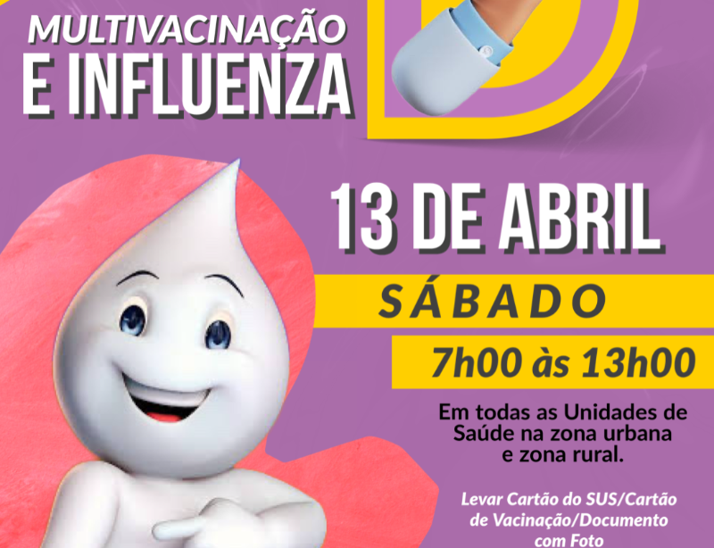Avisa geral que tem dia D de vacinação contra Influenza e multivacinação sábado, dia 13 de abril. ⚠️ A T E N Ç Ã O: