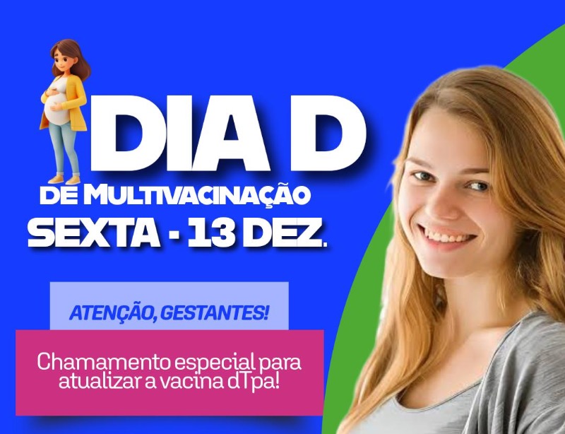 Na próxima sexta-feira, dia 13/12, tem Dia D de Multivacinação, com chamamento especial para as mamães gestantes, hein! 🤰💉